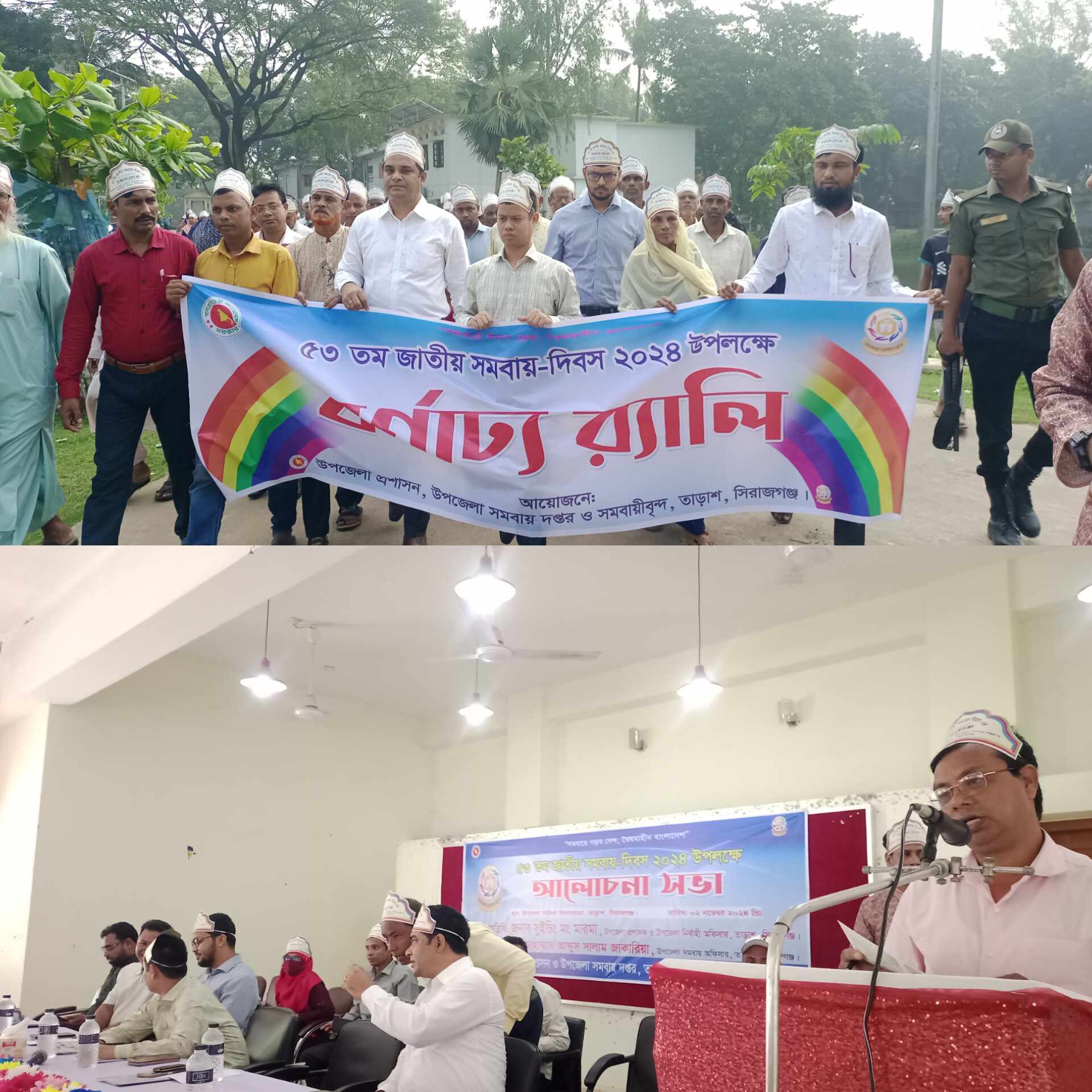 "সমবায়ে গড়ব দেশ, বৈষম্যহীন বাংলাদেশ" এই প্রতিপাদ্যকে সামনে রেখে সিরাজগঞ্জের তাড়াশে জাতীয় সমবায় দিবস পালিত হয়েছে। দিবসটি উপলক্ষে সসমবায়ী ও জাতীয় পতাকা উত্তোলন , র্যালী, চেক বিতরণ ও আলোচনা সভা অনুষ্ঠিত হয়।