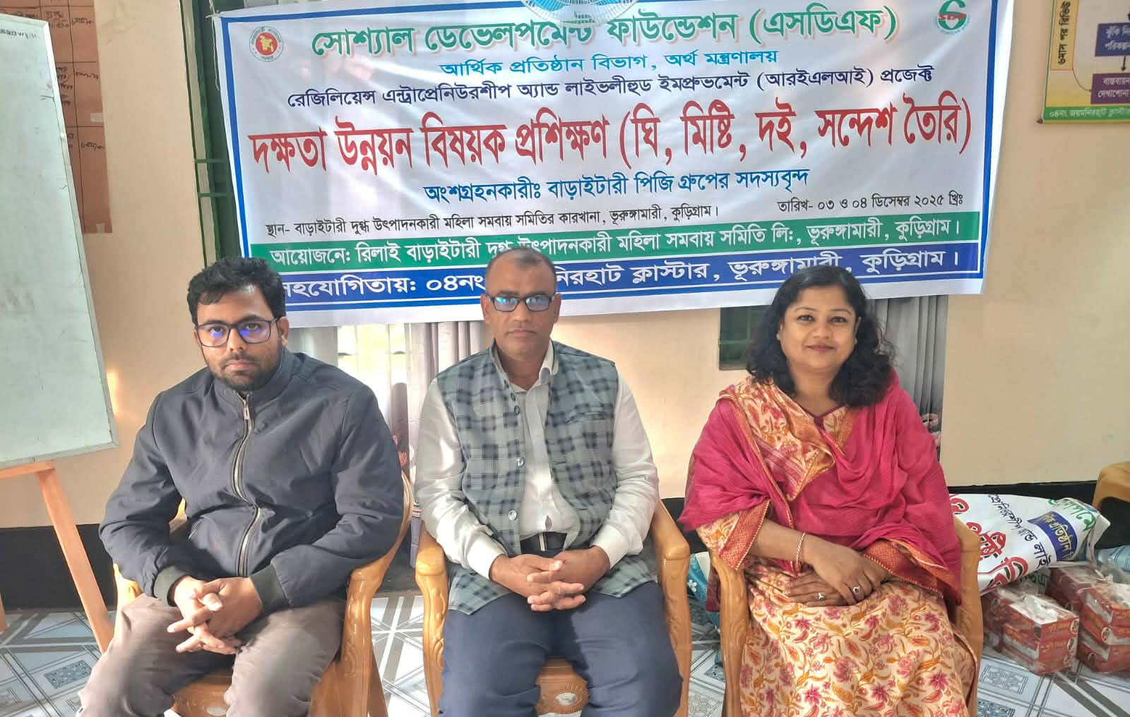 কুড়িগ্রামের ভুরুঙ্গামারী উপজেলার জয়মনিরহাট ক্লাস্টারের বারাইটারী গ্রাম সমিতির অফিসে বাংলাদেশ সরকারের অর্থ মন্ত্রণালয় দ্বারা পরিচালিত আর্থিক প্রতিষ্ঠান সোশ্যাল ডেভেলপমেন্ট ফাউন্ডেশন (এসডিএফ) এর দক্ষতা উন্নয়ন বিষয়ক প্রশিক্ষণ অনুষ্ঠিত হয়েছে।