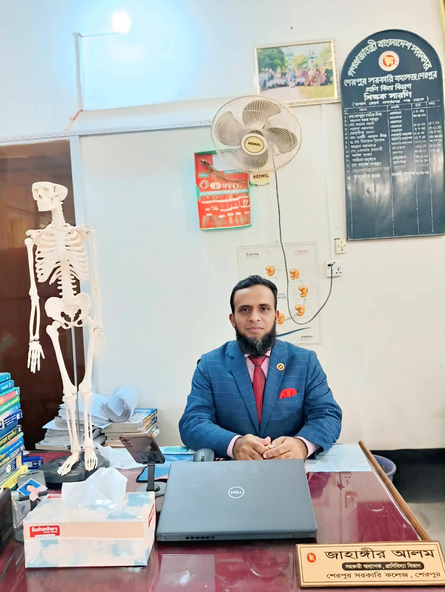 বর্তমানে জাহাঙ্গীর আলম শেরপুর সরকারি কলেজে প্রাণিবিদ্যা বিভাগের সহকারী অধ্যাপক হিসেবে অত্যান্ত দক্ষতার সাথে কাজ করে যাচ্ছেন।
