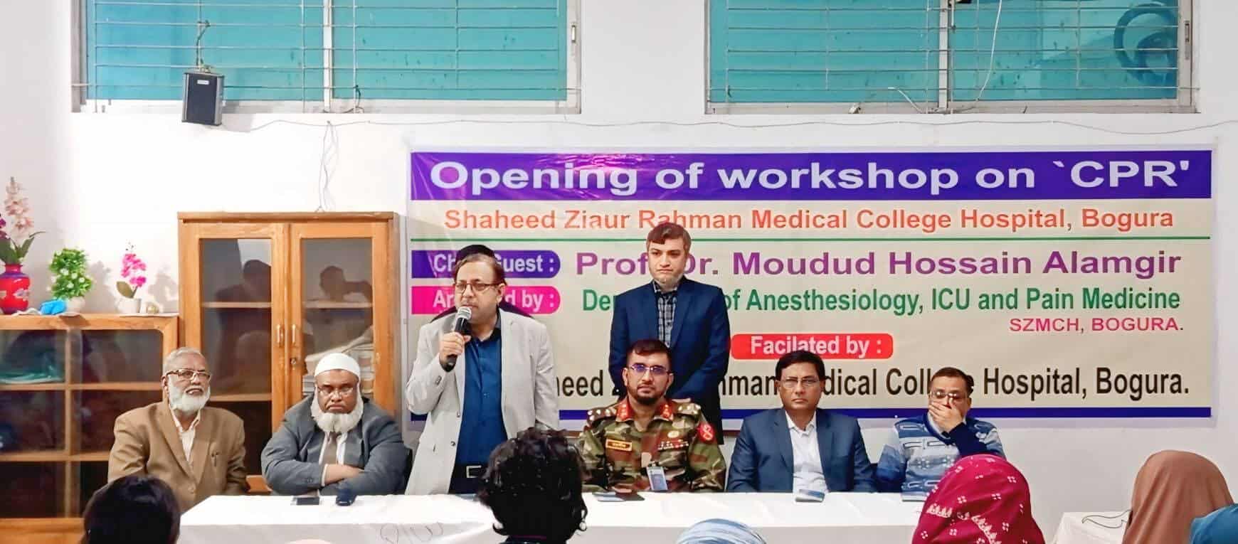 শহীদ জিয়াউর রহমান মেডিকেল কলেজ ও হাসপাতালে এ্যানেস্থেসিয়া, আইসিইউ ও পেইন মেডিসিন বিভাগের উদ্যোগে “Workshop on CPR” কর্মশালার আনুষ্ঠানিক উদ্বোধন অনুষ্ঠিত হয়েছে। আধুনিক চিকিৎসা ব্যবস্থায় হার্ট ও রেসপিরেটরি অ্যারেস্ট–পরবর্তী দ্রুত ও কার্যকর সাড়া দেওয়ার কৌশল স্বাস্থ্যসেবায় অত্যন্ত গুরুত্বপূর্ণ—এ বিষয়ক দক্ষতা বৃদ্ধির লক্ষ্যেই এ কর্মশালার আয়োজন বলে জানিয়েছেন সংশ্লিষ্টরা।