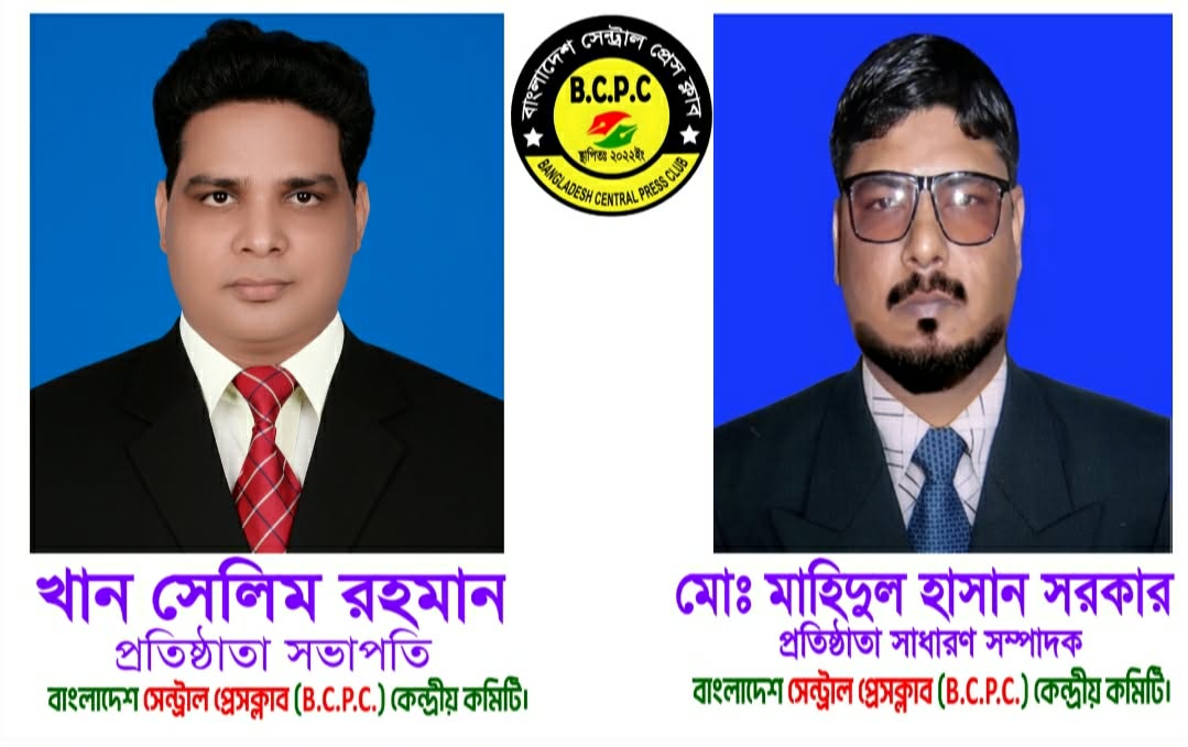 বাংলাদেশ সেন্ট্রাল প্রেস ক্লাব (B.C.P.C) প্রতিষ্ঠাতা সভাপতি হিসেবে দায়িত্ব পালন করছেন খান সেলিম রহমান এবং প্রতিষ্ঠাতা সাধারণ সম্পাদক হিসেবে রয়েছেন মোঃ মাহিদুল হাসান সরকার।
