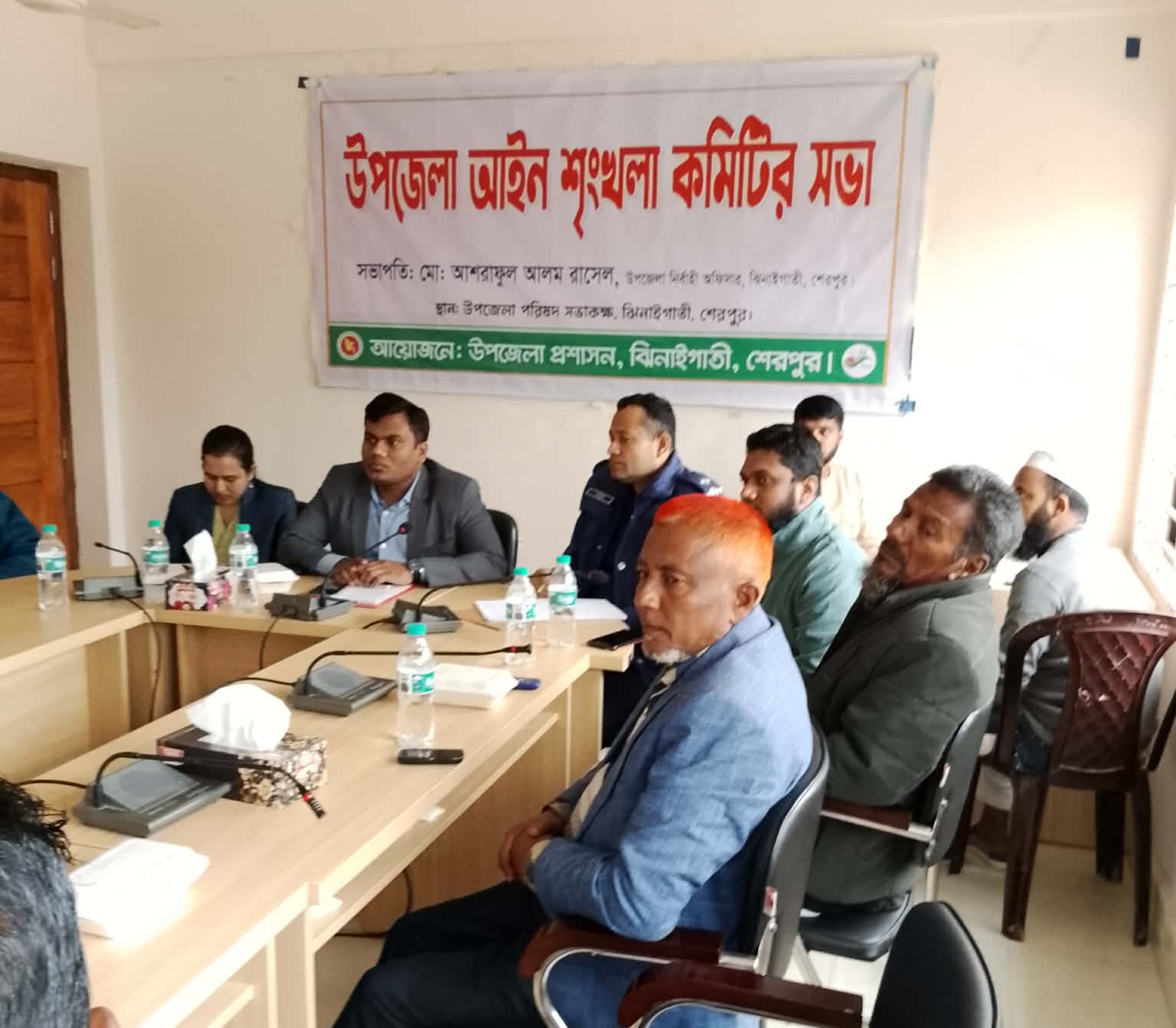 শেরপুরের ঝিনাইগাতী উপজেলায় ( ২৪ ডিসেম্বর ) বুধবার আইন শৃঙ্খলা কমিটির সভা উপজেলা হল রুমে স্থানীয় উপজেলা নির্বাহী কর্মকর্তা ( ইউএনও ) মোঃ আশরাফুল আলম রাসেলের সভাপতিত্বে অনুষ্ঠিত হয়।
