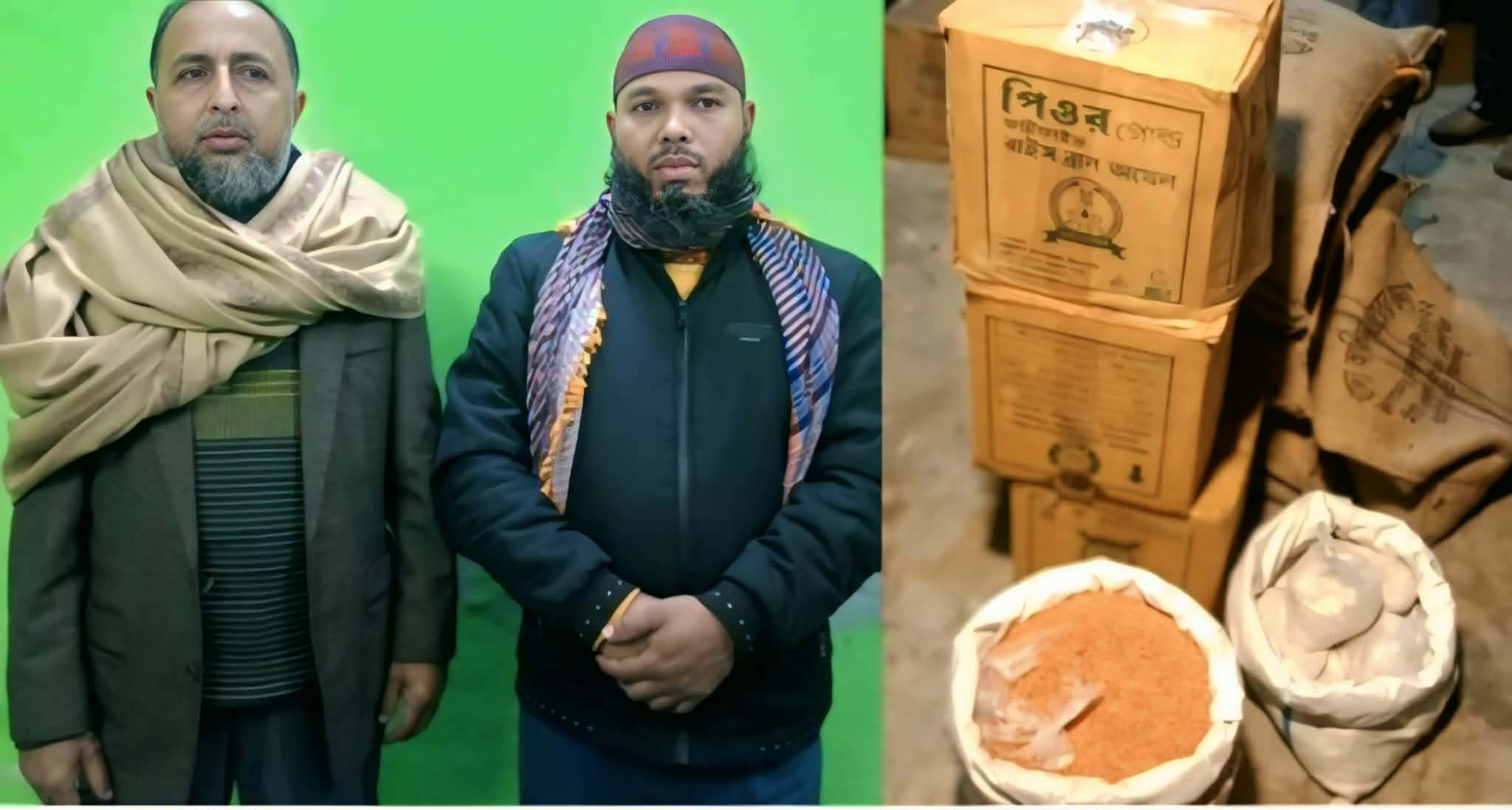 শনিবার (২৭ ডিসেম্বর) রাত সাড়ে ১১টার দিকে শহরের জাহিদ এন্টারপ্রাইজ-এ পুলিশ ও সেনাবাহিনী যৌথ অভিযান চালিয়ে মালামাল জব্দ এবং জড়িত দুইজনকে আটক করে। গ্রেফতারকৃতরা হলেন বেলায়েত হোসেন (৬১) ও শহিদুল ইসলাম (৪০)।