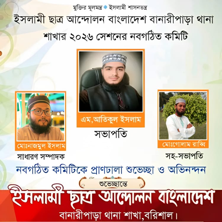 ইসলামী ছাত্র আন্দোলন বাংলাদেশ বানারীপাড়া থানা শাখার থানা সম্মেলন–২০২৬ অনুষ্ঠিত হয়েছে।