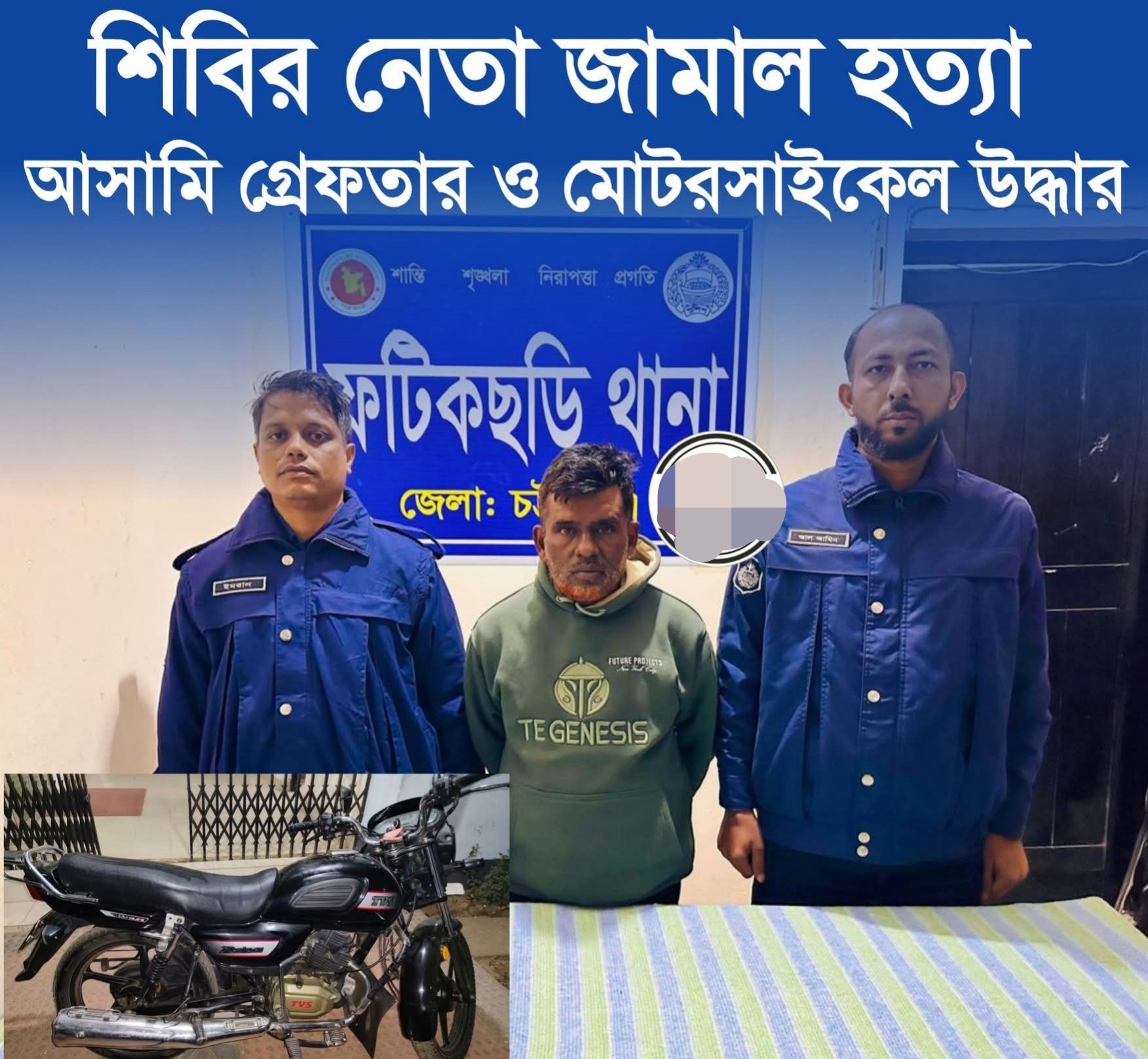 ফটিকছড়িতে আলোচিত শিবির নেতা ও গার্মেন্টস ব্যবসায়ী মোহাম্মদ জামাল উদ্দিন হত্যাকাণ্ডের রহস্য উন্মোচিত হয়েছে। পুলিশ প্রযুক্তি, সিসিটিভি চিত্র বিশ্লেষণ ও গোয়েন্দা তথ্যের ভিত্তিতে হত্যাকাণ্ডে সরাসরি সম্পৃক্ততার অভিযোগে নাজিম উদ্দিন প্রকাশ বাইট্টা নাজিম (৫২) নামে এক আসামিকে গ্রেফতার করেছে। এ সময় নিহতের ব্যবহৃত মোটরসাইকেলও উদ্ধার করা হয়।