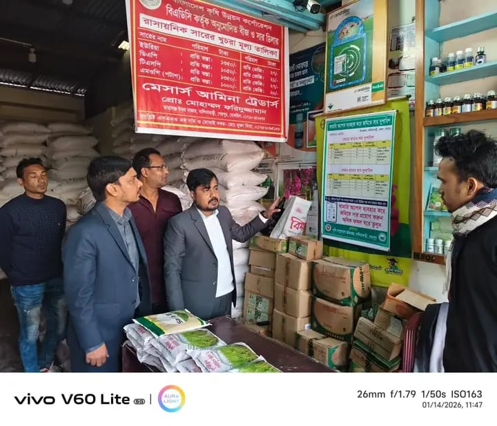 আজ বুধবার ১৪ জানুয়ারি শেরপুরের নালিতাবাড়ী উপজেলায় বিভিন্ন সার ডিলার দোকান মনিটরিং করেন মো: আলমগীর কবির, অতিরিক্ত উপপরিচালক (উদ্যান) শেরপুর।