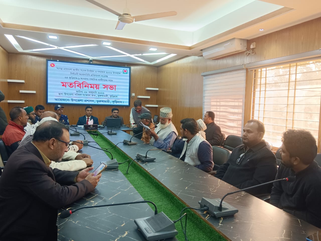 বুধবার (২৮ জানুয়ারি) দুপুরে উপজেলা পরিষদ সম্মেলন কক্ষে ২৫ কুড়িগ্রাম-১ আসনের নির্বাচনী প্রতিদ্বন্দ্বী প্রার্থী ও তাদের প্রতিনিধিদের সাথে এ সভা অনুষ্ঠিত হয়।