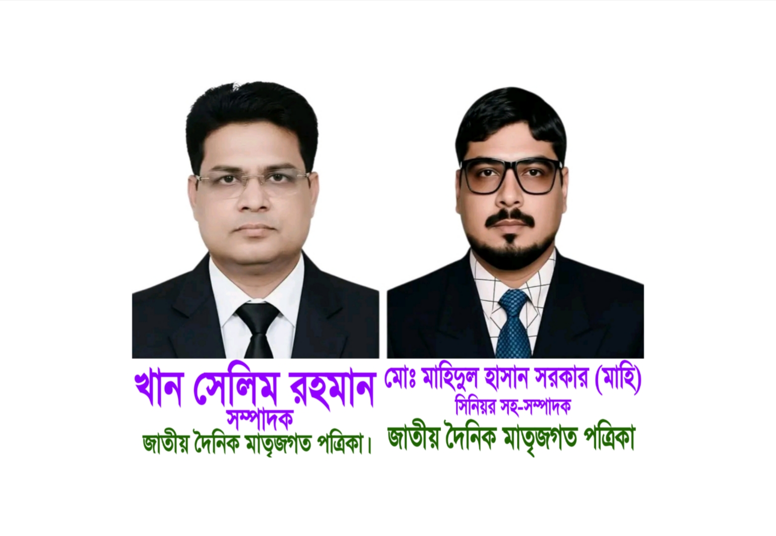 সম্পাদক ও সিনিয়র সহ-সম্পাদকের সম্মিলিত প্রজ্ঞা, নৈতিক অবস্থান ও সাহসী সিদ্ধান্ত গ্রহণের ফলেই জাতীয় দৈনিক মাতৃজগত আজ গণমানুষের আস্থা অর্জন করতে সক্ষম হয়েছে। সত্য প্রকাশে দৃঢ় অঙ্গীকার, অন্যায়ের বিরুদ্ধে আপসহীন অবস্থান এবং গণতান্ত্রিক মূল্যবোধের প্রতি শ্রদ্ধাশীল মনোভাব তাঁদের নেতৃত্বকে আরও মর্যাদাপূর্ণ করে তুলেছে। তাঁদের হাত ধরেই পত্রিকাটি কেবল একটি সংবাদমাধ্যম নয়, বরং সমাজ পরিবর্তনের একটি শক্তিশালী প্ল্যাটফর্মে পরিণত হয়েছে।