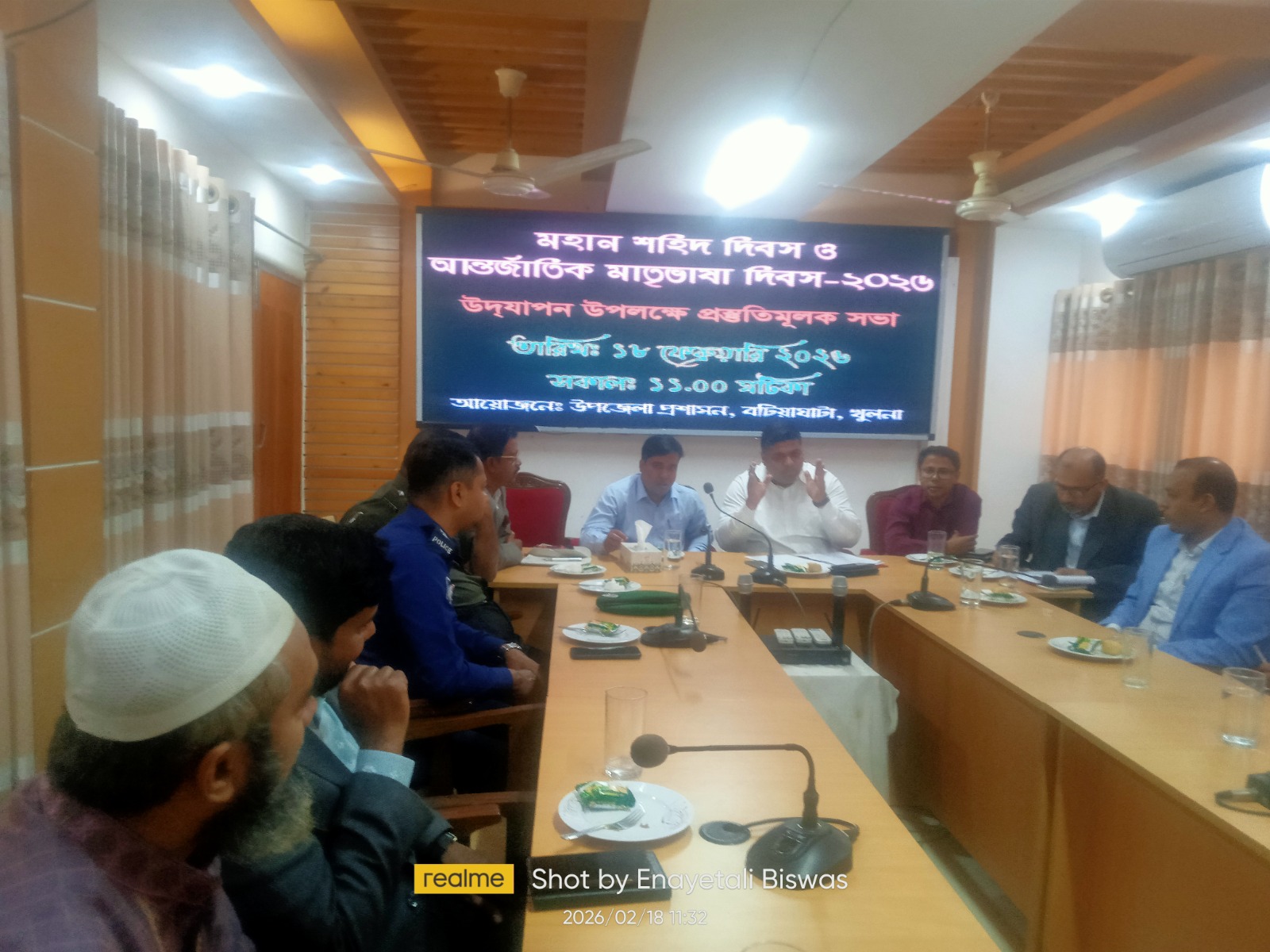 সভায় সভাপতিত্ব করেন উপজেলা সহকারী কমিশনার (ভূমি) সোয়েব শাত ইভান। এ সময় উপস্থিত ছিলেন কৃষি কর্মকর্তা আবু বকর সিদ্দিক, উপজেলা প্রকৌশলী গৌতম কুমার মন্ডল, প্রাণিসম্পদ কর্মকর্তা ডা. তরিকুল ইসলাম, সমাজসেবা কর্মকর্তা নাসরিন সুলতানা, মাধ্যমিক শিক্ষা কর্মকর্তা জাহিদুর রহমান, প্রাথমিক শিক্ষা কর্মকর্তা, মহিলা বিষয়ক কর্মকর্তা বিপাশা তনু, যুব উন্নয়ন কর্মকর্তা আবু বক্কর মোল্ল্যা, খাদ্য কর্মকর্তা অনিন্দ কুমার, অধ্যাপক ও সাংবাদিক এনায়েত আলী বিশ্বাস, সাংবাদিক ইন্দ্রজিৎ টিকাদার, বীর মুক্তিযোদ্ধা নিরঞ্জন কুমার রায়, সমবায় কর্মকর্তা জান্নাতুল নেছা-সহ বিভিন্ন সরকারি ও বেসরকারি দপ্তরের কর্মকর্তারা।