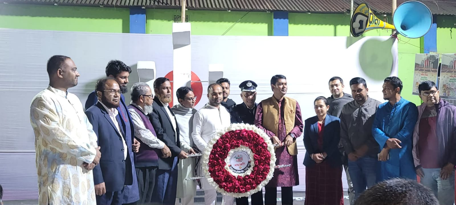 রাত ১২ টা ০১ মিনিটে একুশের প্রথম প্রহরে ফুল দিয়ে শ্রদ্ধা জানান, উপজেলা প্রশাসনের পক্ষে উপজেলা নির্বাহী কর্মকর্তা আল-আমীন।