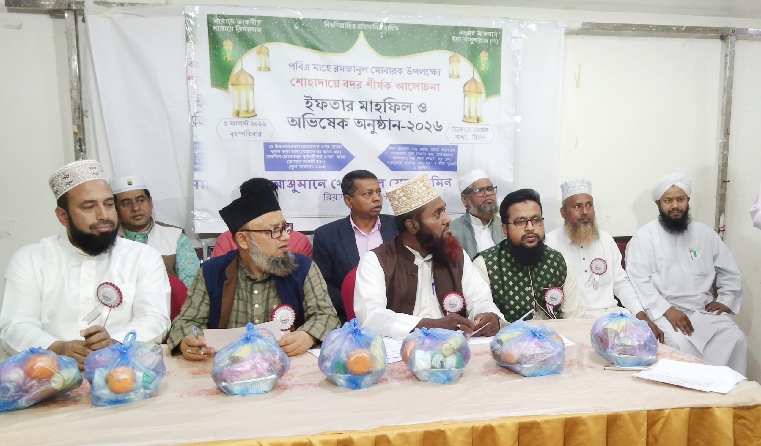 অনুষ্ঠানটি আঞ্জুমানে খোদ্দামুল মুসলিমীন রিয়াদ কেন্দ্রীয় পরিষদের খাজা মাঈনুদ্দিনের সভাপতিত্বে_ প্রধান অতিথি হিসেবে উপস্থিত ছিলেন
