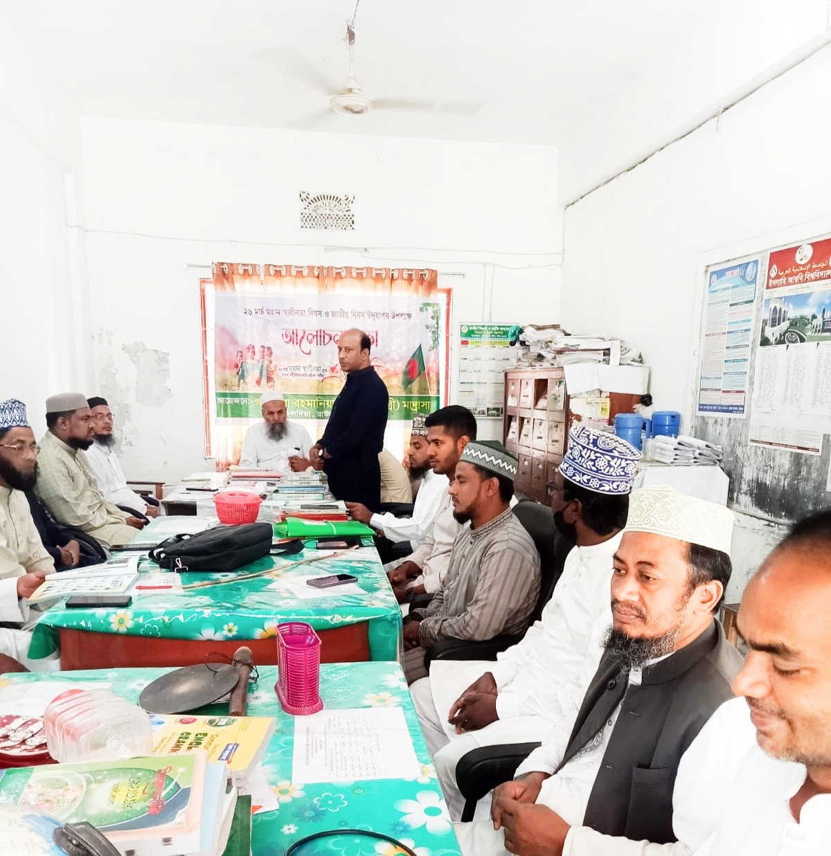 বক্তারা বলেন - ১৯৭১ সালের আজকের এই দিনে বাংলার মানুষের অধিকার আদায়ে মুক্তিকামি পূর্ব বাংলার মানুষ আন্দোলনে ঝাপিয়ে পড়েন,শুরু হয় মুক্তি যুদ্ধ, এ যুদ্ধে ত্রিশ লক্ষ নারী পুরুষ মানুষ জীবন উৎসর্গ করেন।দীর্ঘ নয় মাস যুদ্ধের পর আজকের এই দিনে সাধীনতা অর্জন করে বাংগালী জাতী। বিশেষ করে আমাদের মৃত্যুর কয়েক দিনপর যদিও সবাই আমাদের ভূলে যায়, কিন্তু যারা মানুষের অধিকার আদায়ের লক্ষ্যে স্বাধীন রাষ্ট্র অর্জনের জন্য শহীদ হয়েছেন পৃথিবী ধংষের আগ মুহূর্ত পর্যন্ত জাতী তাদের এভাবে স্বরণ করে যাবে। এসময় শিক্ষক কর্মকর্তা ও কর্মচারীদের মধ্যে উপস্থিত ছিলেন অত্র মাদ্রাসার আরবী প্রভাষক আল্লামা মুনির আহমেদ, মাওলানা মুহাম্মদ খোরশেদুল আলম, ওয়াহিদুল ইসলাম, মাওলানা সৈয়দ মুহাম্মদ লুৎফর রহমান, মাওলানা মুহাম্মদ মাছুমুর রশিদ, ইসমাইল জবীহ, মাওলানা নাছির উদ্দীন মাওলানা মুহাম্মদ দিদারুল আলম খোরশেদা বেগম,ছেমন আরা বেগম,মাওলানা জাফর আলম, মাওলানা সৈয়দ মুহাম্মদ গিয়াসউদ্দিন, মাওলানা মুহাম্মদ রফিকুল ইসলাম, মাওলানা মুহাম্মদ কুতুব উদ্দিন, মামুনুল আলম, জেসমিন আকতার প্রমুখ। আলোচনা শেষে সভাপতি আল্লামা কারী আবু তৈয়ব হামিদি মঃ জিঃআঃ সমাপনী বক্তব্য শেষে শহীদদের মাগফিরাত ও দেশের সার্বিক কল্যাণ কামনার মাধ্যমে অনুষ্ঠান সমাপ্তি ঘোষণা করা হয়।