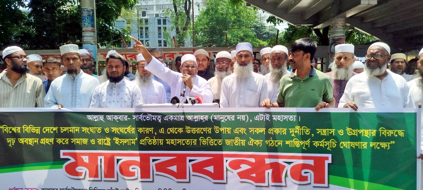 মানববন্ধন শেষে সকল প্রকার দুর্নীতি, সন্ত্রাস ও উগ্রপন্থার বিরুদ্ধে দৃঢ় অবস্থান গ্রহণ করে সমাজ ও রাষ্ট্রে 'ইসলাম' প্রতিষ্ঠায় মহাসত্যের ভিত্তিতে জাতীয় ঐক্য গঠনে- এপ্রিল ও মে ২০২৬ইং ২ মাসব্যাপী শান্তিপূর্ণ ৩ দফা কর্মসূচি ঘোষণা করা হয়।