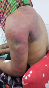 আহতের স্ত্রী জানান, মিথ্যে মাছ চুরির সন্দহে বাড়ি থেকে ডেকে নিয়ে আমার স্বামীকে রাতভর যে অমানুষিক নির্যাতন চালানো হয়েছে তা মধ্যযুগীয় বর্বরতাকেও হার মানাই। সকালে খবর পেয়ে আমি আমার স্বামীকে মার ধরে হাত থেকে বাঁচানোর চেষ্টা করলে মেম্বারের ছেলে ইযাবা ব্যবসায়ী আতা উল্লাহ আমার চুলের মুড়ি ধরে এলোপাতাড়ি কিল ঘুষি মারে।