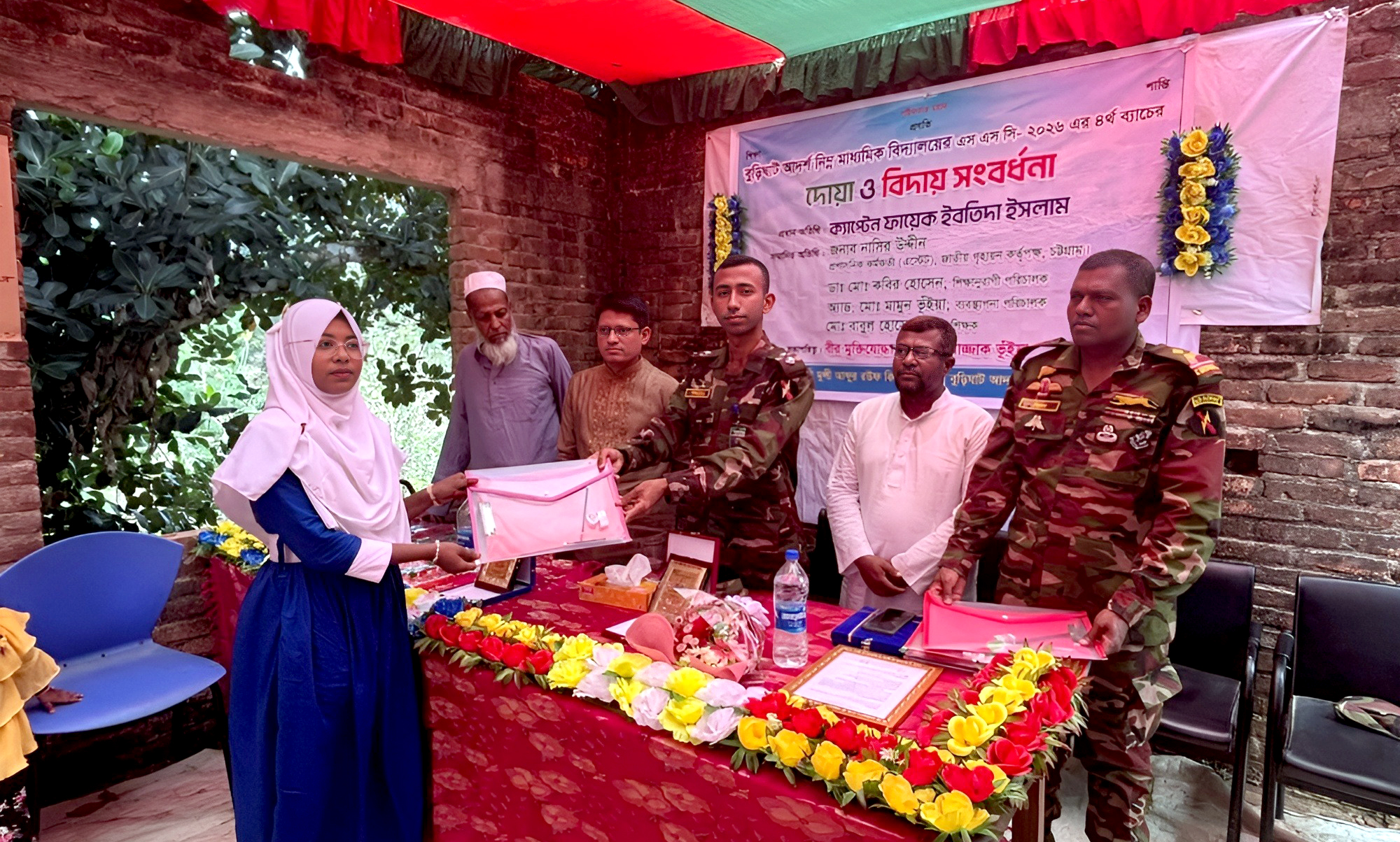সম্প্রীতি ও উন্নয়ন প্রকল্পের আওতায় নানিয়ারচর সেনা জোন কর্তৃক এপ্রিল ২০২৬ (শনিবার) রাঙ্গামাটি জেলার নানিয়ারচর উপজেলাধীন বুড়িঘাট ইউনিয়নের আওতাধীন বুড়িঘাট আদর্শ নিম্ন মাধ্যমিক বিদ্যালয়ের এস.এস.সি পরীক্ষার্থীদের বিদায়ী সংবর্ধনা প্রদান ও শিক্ষা সামগ্রী বিতরণ করা হয়েছে।